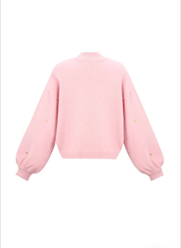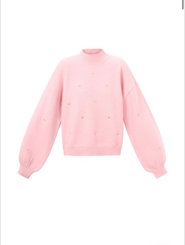 Deze lieve roze trui met gouden hartjes valt perfect op maat en is heerlijk zacht. Een speelse en vrouwelijke must-have voor jouw garderobe.