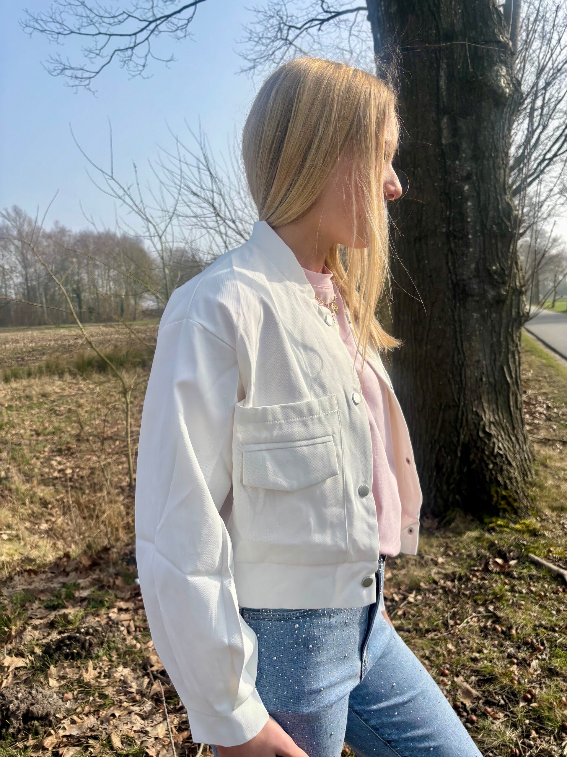 Een super leuk jasje dat elke outfit nét dat beetje extra geeft! Dit bomberjack heeft een fijne pasvorm en is perfect om te dragen over een T-shirt, top of trui. Ideaal voor een casual maar trendy look.